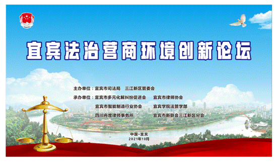 2021年10月15日下午,“宜宾法治营商环境创新论坛”在宜宾学院求是会堂举行。本次论坛,由宜宾市司法局、三江新区管委会主办,宜宾学院法管学部等单位承办。