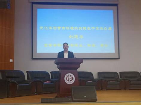 宜宾学院法管学部刘廷华教授以《优化营商环境的关键在于促进交易》为题作报告,认为营造法治营商环境,就是要在法律制度框架内巩固交易基础、降低交易成本、保障交易安全、促进交易公平、提高交易效率,最终增加交易收益。