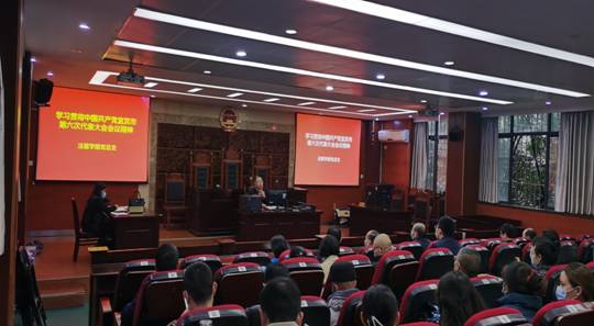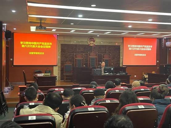 2021年11月3日下午2点30,法学与公共管理学部党总支副书记刘廷华主持宣讲中共宜宾市第六次党代会精神,学部全体教师参加。