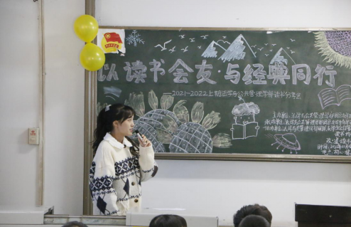 为促进学生养成良好的阅读习惯,营造良好的阅读氛围,助推学风建设。法学与公共管理学部于11月16日中午在初心楼104教室举办了主题为“以读书会友,与经典同行”的读书分享会。党总支副书记张波、团总支书记王燕、李怀宗老师、游宇老师以及团总支学生会主席团成员出席本次活动。