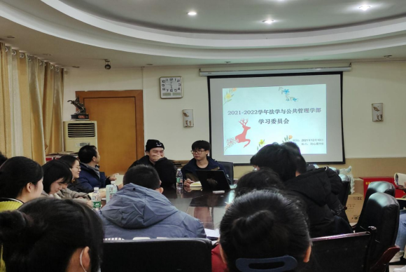 为广泛听取学生意见,促进师生良性交流,持续优化学部教学工作,法学与公共管理学部于2021年12月10日中午在初心楼会议室召开2021—2022学年上期学习委员会议。本次会议由副部长周陶主持,教学办公室老师朱丹、专职辅导员杨肖、陈利敏以及19级—21级全体学习委员参会。