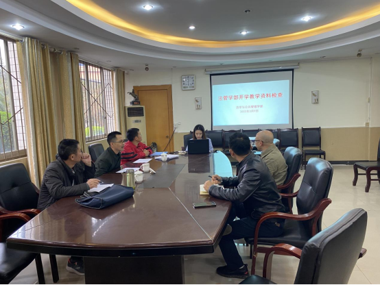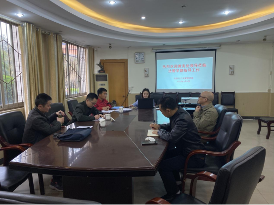 3月9日上午,学校教务处副处长(负责工作)朱文优带领教务处教学检查小组一行,在学部部长何一、副部长周陶及学部教学办相关人员的陪同下,对法学与公共管理学部2022年春季新学期开学教学工作开展检查指导。检查小组围绕疫情期间教师教学上课方式、上课准备情况、教师劳动纪律、教师教学资料准备情况、学部检查督导等方面进行了了解检查。