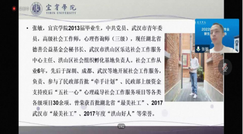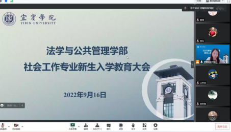 2022年9月16日19时,2022级社会工作专业新生入学教育大会于线上举行。社会工作专业学科带头人陈世海教授、重庆仁怀青少年社会工作服务中心主任王丽萍、湖北省德善公益基金会秘书长张敏等出席本次社会工作专业新生入学教育大会,社工教研室全体老师以及95名新生线上参加。