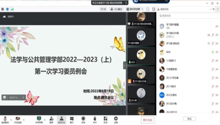 为进一步加强学风建设,营造良好的育人氛围,推动学部的毕业生工作以及让新的学委尽快适应本职工作,提高学习委员履职尽责的能力。9月19日中午,法管学部教学办在腾讯会议组织召开秋季学期第一次学习委员例会。本次会议由法管学部副部长周陶主持,教学办公室教师朱丹、谢正珧,专职辅导员杨肖、陈利敏以及19级—22级全体学习委员参会。