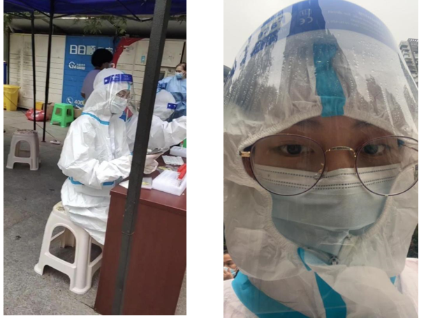 9月18日城区再次出现新型冠状病毒阳性病例。广安区疾控中心研究决定所有街道、小区进行全民核酸筛查,玉兔社区安排下午四点开始核酸检测工作,她主动报名参与相关工作,三点半她便到达小区核酸检测点开始进行相关准备,穿上了整套的防护服,从头到脚捂得严严实实,然后开始信息采集工作,从四点一直到七点工作才结束,她协助医生完成了400多人的核酸检测。她说,第一次明白“大白”的艰辛与不易,穿上防护服还没开始工作就开始流汗水、呼吸不畅,眼睛和面罩都好模糊,戴上手套也很容易把电话号码点错。尽管困难重重,但她都一一的坚持下来,坚持不懈、毫无怨言地完成每项工作。