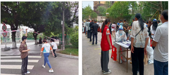 君见否,我宜院学子,身着马甲,坚守检测战地,日晒风雨无惧;