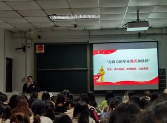 大三年级开展“我的就业计划”活动,各班班主任给大家分析了本学期学习时间所剩无几,以及迈入大三之后的主要学习任务,从而引入班会的主题。结合PPT引导大家开始思考以后想从事哪些方面的工作,分析了今年严峻的就业形势及国家出台的相应措施,比如考研扩招、应征入伍、国家对应聘应届毕业生的企业会有税收补助等,鼓励大家设定好生涯目标,结合自身的性格特点,做好就业计划。