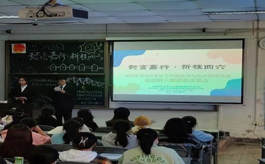 为学习贯彻党的二十大精神,加强学风建设,交流英语学习方法,切实提高学生英语应试水平。11月21日,法学与公共管理学部(下简称:法管学部)在初心楼101教室举办英语四六级经验交流会。本次大会邀请了法管学部优秀学生代表进行经验分享交流。