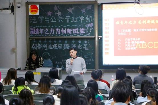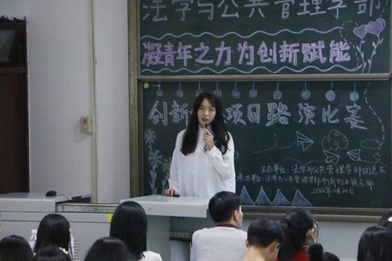 为进一步落实大学生创新创业指导意见,深入学习贯彻习近平总书记来川来宜来校指示精神,鼓励大学生积极参与创新创业活动。11月22日,法学与公共管理学部(下简称:法管学部)于初心楼104教室开展了创新创业项目的路演。法管学部实验与创新中心副主任曲美霞、教师陈利敏、杨肖、汪凌、冯嘉华以及团总支学生会主席团成员出席此次活动并担任评委。