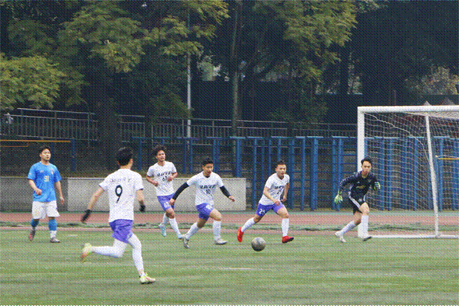 随着裁判的一声哨响,比赛正式开始。双方运动员迅速进入状态,球员们竞相追逐,比赛双方互有攻防,捕捉射门机会。双方球员默契的配合和巧妙的传球使本次比赛精彩万分。开场不到二十分钟,法管球员们在观众的呼喊声中士气高涨,接连拿下两球。球员们超群的技巧使在场观众眼花缭乱、热血沸腾,足球场边传出阵阵掌声与喝彩。随后,法管球员们逐渐掌握主动权,势如破竹。最终,法管学部以5:2的比分获得此次比赛冠军。