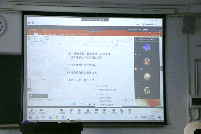 活动伊始,周陶对通过考研初试的同学表示祝贺,并结合本次研究生考试的大环境以及研究生复试的相关流程变化给予说明,同时对当前就业环境做了简要介绍。