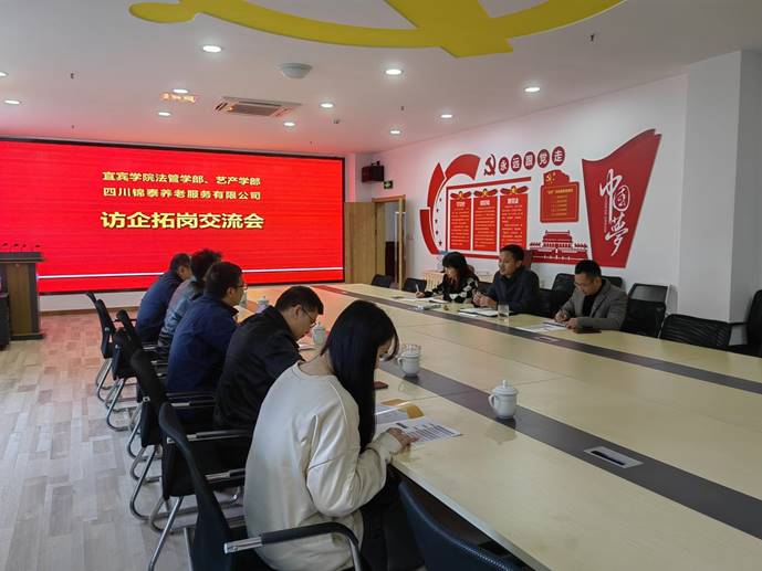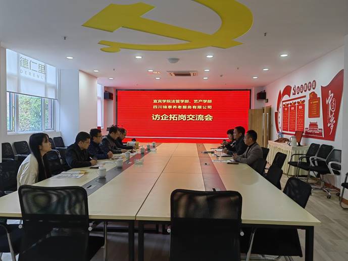 为深入贯彻落实党的二十大精神和习近平总书记来校视察重要指示精神,进一步加强校企合作,拓展毕业生就业渠道,保障毕业生高质量就业,3月23日,宜宾学院法管学部副部长周陶、艺产学部副部长刘炜、行政管理教研室主任徐向峰、环境设计教研室主任尤川宝一行前往四川锦泰养老服务有限公司开展访企拓岗交流,洽谈校企合作促共赢事项。