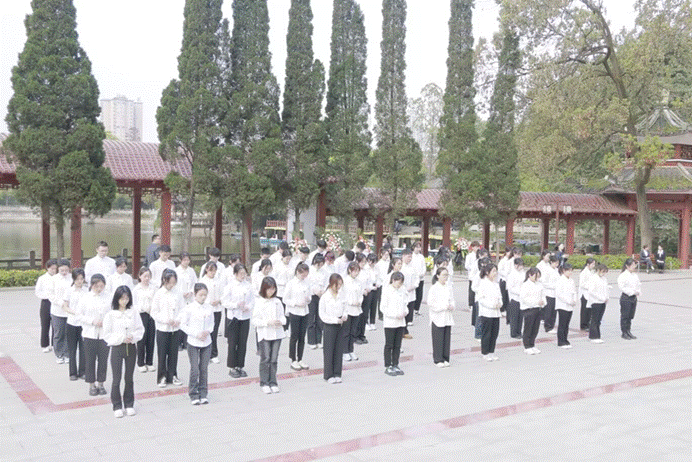 又是一年春草绿,又是一年清明时。为缅怀革命先烈的丰功伟绩,汲取催人奋进的精神力量,激发青年学子爱党爱国情怀,法学与公共管理学部(下简称:法管学部)于4月3日在宜宾市烈士陵园开展清明节祭奠英烈活动。法管学部学生工作办公室老师杨肖、刘顺鑫、王馨,学生党员代表及团员代表共计65人参与本次活动。