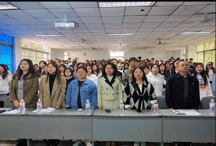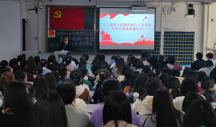 为了加强入党积极分子的爱国情怀、端正其入党动机及入党态度,为党员队伍的后备军添砖加瓦。法学与公共管理学部于2023年4月7日12:40在初心楼104召开党校第四十四期入党积极分子培训班开班典礼。本期开班典礼由党章学习部老师陈利敏同志主持,参加会议的有法学与公共管理学部正处级组织员蒲东升、党校第四十四期积极分子培训班班主任陈雨佳、法学与公共管理学部第一学生党支部书记杨肖、第二学生党支部书记刘顺鑫、第三学生党支部书记王馨和162名入党积极分子。