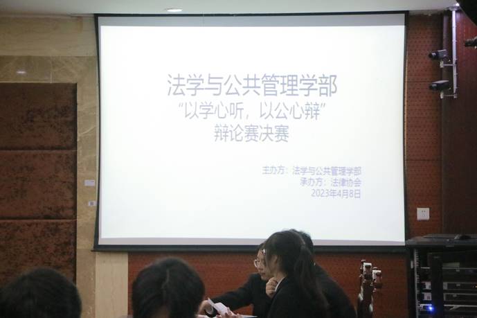 为增强大学生表达能力与思辨能力,凝聚团队合作精神,法学与公共管理学部(下简称:法管学部)于4月8日在初心楼模拟法庭举办“以学心听,以公心辩”辩论赛决赛。法管学部教师李凤军、高磊、肖涵宇以及团学会主席团部分成员出席本次活动并担任评委。