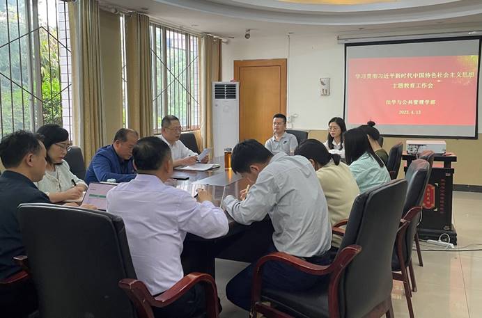 4月13日下午,法学与公共管理学部党总支组织召开学习贯彻习近平新时代中国特色社会主义思想主题教育工作会,学部党总支副书记(负责工作)刘廷华主持会议,全体处科级干部参会学习。