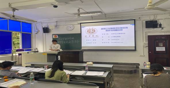 答辩学生以PPT形式围绕选题缘由、主要观点、创新点全面介绍论文意义、重难点、数据支撑等内容,答辩老师根据现场问答情况给予指导建议。法学与公共管理学部始终坚守规范、标准的毕业论文要求,不断提升毕业论文质量。