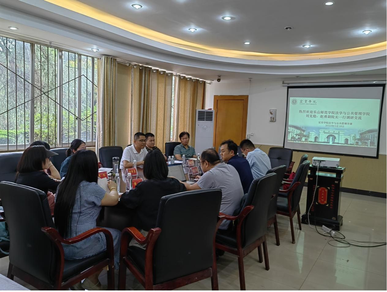 2023年5月18日下午,乐山师范学院法学与公共管理学院副院长刘克稳、赵勇,教授龚卫东,行政管理教研室主任王怡,专任教师范薇、杨智慧一行,到法管学部调研法学、行政管理、劳动与社会保障的专业建设和人才培养等相关工作。法管学部副部长周陶主持座谈会。学部法学、行政管理、劳动与社会保障教研室相关工作人员参加座谈交流。