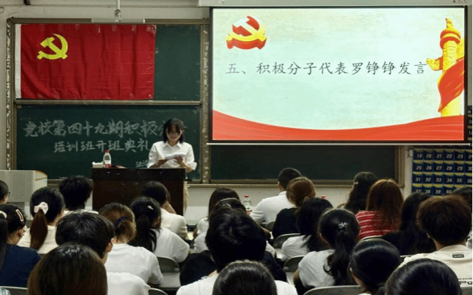 最后,积极分子学生代表24级2班的罗铮铮同志发言。她表达了对此次培训的期待与珍惜之情,表示会以饱满的热情、认真的态度投入到学习中,深入学习党的理论,努力提升自身素养,在日常学习生活中发挥模范带头作用,以实际行动争取早日加入中国共产党。