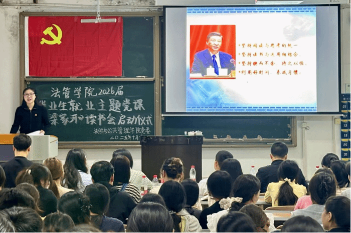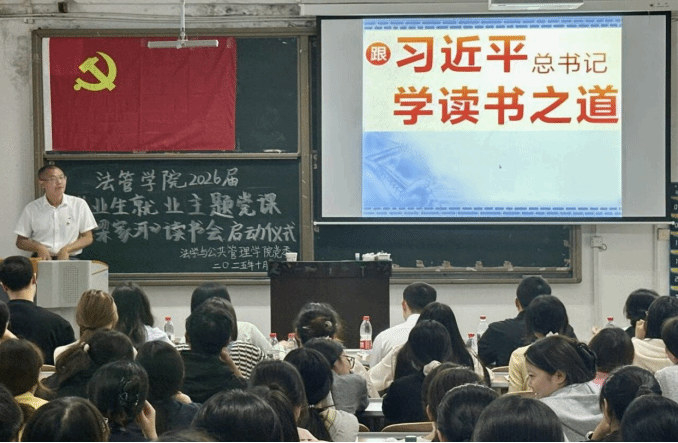 为了引导广大党员从习近平总书记的成长经历中汲取精神养分、筑牢理想根基,10月19日,法管学院党委于初心楼214教室举行“读《梁家河》,悟领袖成长”启动仪式。本次仪式由周林老师主持,党委副书记(主持工作)李伟主讲,参与人员有党委副书记、纪委书记罗春,学工办主任王燕,学工办副主任杨肖,第一、第二、第三学生党支部书记李成龙、谢明聪、王馨,委员曾晓琴、陈利敏、宋晚秋,以及70名学生党员和38名发展对象。