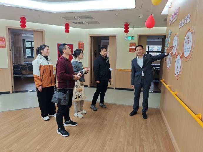 研讨会后,周陶副院长一行在王宾总经理陪同下,实地调研了天空之城长者照护中心,深入了解智慧养老管理系统、标准化服务流程及适老化空间设计等创新实践。学院教师与企业管理人员围绕学生实习岗位情况展开现场讨论,为优化实习方案、开发特色实践课程提供了重要参考。