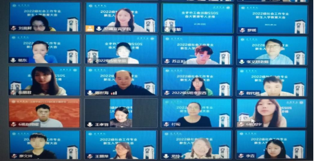 会议开始,全体与会人员进行线上合影纪念,邓镛介绍与会人员并宣布本次社会工作专业新生入学教育大会正式开始。