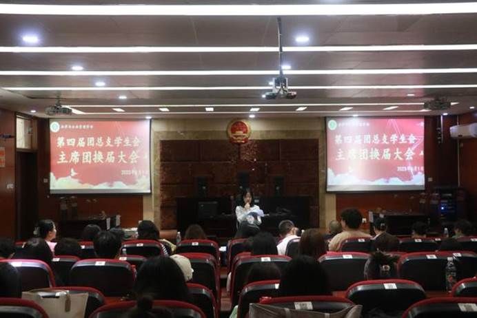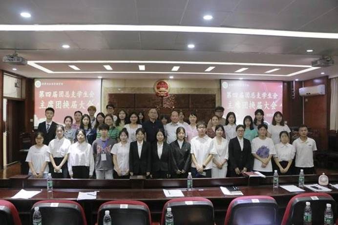 为落实学习贯彻习近平新时代中国特色社会主义思想主题教育内容,增强学生组织的新生力量,为学生会工作提质赋能,法学与公共管理学部(下简称:法管学部)分别于6月1日、6月3日在初心楼模拟法庭、初心楼213教室开展了第四届团总支学生会主席团换届大会、学生会部门换届大会。法管学部部长陈世海、党总支副书记张波、团总支书记王燕、学工办教师曾晓琴、杨肖、罗雪娇、刘顺鑫、陈利敏以及团总支学生会主席团成员出席。会议由第三届团总支副书记李小燕主持。
