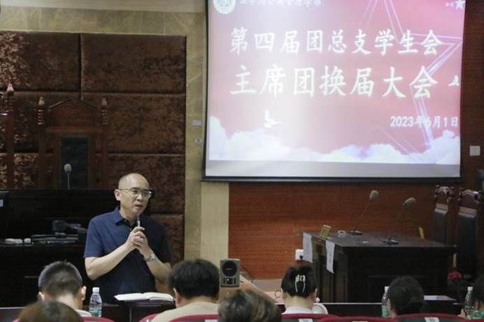 6月1日,主席团换届大会伊始,李小燕对学生会2022-2023学年的工作进行总结。随后张波发表讲话,他围绕“为什么、干什么、怎么干”三个方面对新一届主席团成员寄予殷切期望,同时希望各位学生干部脚踏实地、不忘初心,发挥好榜样模范作用。