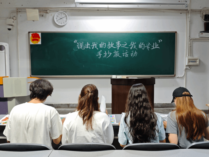 着眼于活动的新颖性与吸引力,此次推普周活动同时推出将手抄报绘制与普通话讲解相结合的“说出我的故事之我的专业”手抄报活动。活动期间,同学们利用手抄报展现优秀的语言文字应用能力、审美创作水平与对普通话推广主题的深度理解,同时,运用规范的普通话进行讲解,系统梳理并准确讲述个人对所学专业的认知见解与思考。同学们用规范语言传递思想,借手抄报创作与专业分享锤炼能力、提升素养,展现出踏实肯干、积极向上的青春风貌。