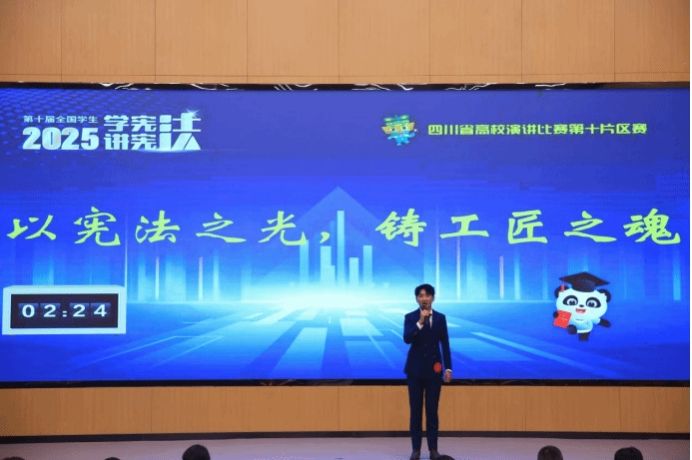 为深入学习宣传宪法,大力弘扬社会主义法治精神,贯彻落实国家“学宪法、讲宪法”政策的开展,2025年10月17日由四川省教育厅主办、宜宾学院首次承办的第十届“学宪法,讲宪法”演讲比赛,在宜宾学院临港校区求实会堂顺利举行。