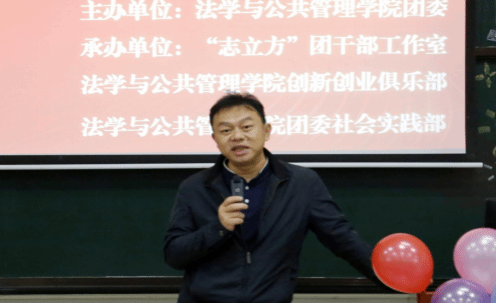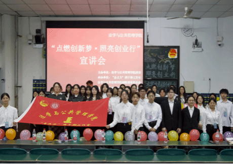 为深入贯彻创新创业教育理念,激发学子创新潜能与创业热情,营造“敢闯会创”的育人氛围,10月24日,法管学院于硕勋楼A座201教室召开大学生创新创业宣讲会。法管学院副院长周陶,知识产权专业教研室主任刘峰,学生工作办公室主任王燕,教师曾晓琴、宋晚秋以及团委学生会主席团部分成员出席此次活动。