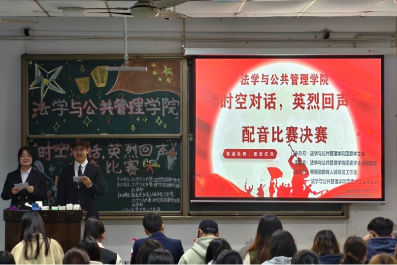 为传承英烈精神,搭建当代青年与革命先辈的“跨时空对话”桥梁,引导青年学子厚植家国情怀,10月29日,法管学院于初心楼101教室举办了“时空对话,英烈回声”配音比赛决赛。法管学院学生工作办公室教师李成龙,谢明聪以及团委学生会主席团部分成员出席本次活动并担任评委。