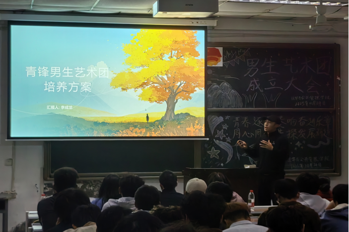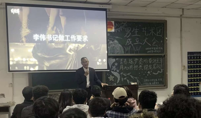 大会伊始,李伟针对两个艺术团的成立,提出要培养我院男生的艺术素养与团队协作能力,通过多样化的艺术实践,展现青年学子积极向上的精神风貌。随后,艺术团负责人李成龙阐明了两个艺术团成立的核心目的,并围绕两个社团后续发展规划展开说明,明确将重点推进“民族文化艺术进校园”系列活动。通过艺术表演、文化展示等形式,增进校园民族文化认同,引导青年学子尊重多元文化,厚植民族团结情怀。最后,参会的老师们就艺术团的组织架构、训练计划等细节进行详细部署,为后续工作开展指明方向。