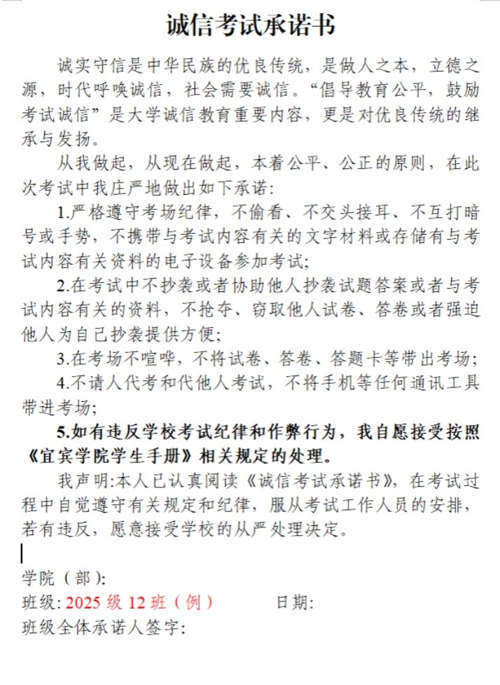 期末临近,请各班班主任要深入宿舍,主动关注学业压力大、情绪焦虑的学生,通过谈心谈话等方式,引导学生自我调适,保持平稳积极的备考心态;发挥学生党员、优秀学生的榜样作用,开展复习方法分享与答题技巧指导,帮助制定合理复习计划,对学业困难学生实施一对一帮扶,提升整体学习成效;要组织学生学习考试管理相关规定,签订诚信考试承诺书,结合违纪典型案例开展警示教育,引导学生牢固树立诚信应考意识。