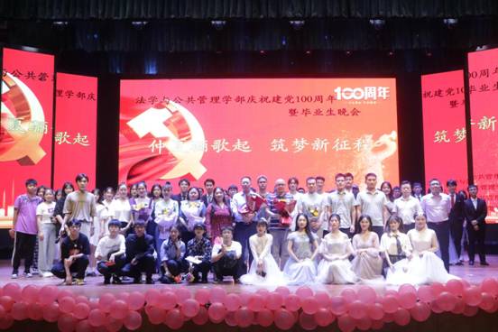 为庆祝建党一百周年,进一步弘扬红色经典文化并庆祝2017级学子顺利毕业,2021年5月20日晚,宜宾学院法学与公共管理学部(下文简称法管学部)于演播厅举行庆祝建党一百周年文艺晚会暨“仲夏骊歌起,筑梦新征程”毕业生晚会。法管学部部长何一、党总支负责人刘廷华、党总支副书记单琰秋、副部长周陶,以及部分辅导员老师、任课老师出席本场晚会。