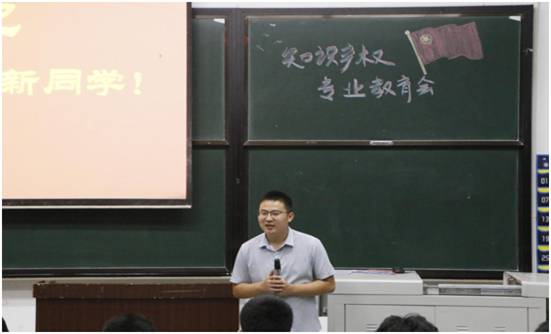 知识产权专业由李海滨老师主持。知产教研室叶成朋老师建议同学们要关心时事、开阔视野、自觉主动承担部分社会责任。
