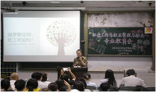 劳动与社会保障由龚文君老师主持。单琰秋副书记强调,在四年的学习生活中学生们应当掌握专业基本理论,掌握现代应用技能,熟悉党和国家方针政策,使自己学有所成,最终为社会作出自己的贡献。