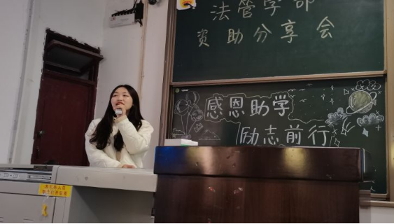 为进一步展示资助政策的育人成效,学习优秀受助、受奖学生的励志精神,法学与公共管理学部于11月30日中午在初心楼104教室举办“感恩助学,励志前行”资助分享会。党总支副书记张波、王馨老师、杨肖老师、刘顺鑫老师、陈利敏老师以及团总支学生会主席团成员出席。