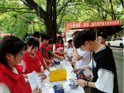 为积极响应“全民阅读”活动号召,营造浓厚的读书氛围,提高师生著作权法律意识和创新意识,法学与公共管理学部(下简称:法管学部)团总支青年志愿者队特于2022年4月23日在宜宾学院A区二平台香樟大道开展了以“读取智慧,书悦人生”为主题的宣传实践志愿活动。