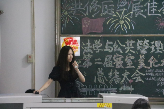 为了让同学们养成良好的生活习惯、营造温馨和谐的学习生活环境,法学与公共管理学部(下简称:法管学部)特此举办了寝室美化大赛。本次比赛经过了前期的三次检查和评选,最终于5月27日中午在初心楼104教室开展此次大赛的总结大会。法管学部党总支副书记张波,团总支书记、学工办主任王燕,学工办老师王馨、杨肖、陈利敏、刘顺鑫及团总支学生会主席团成员出席了本次大会。