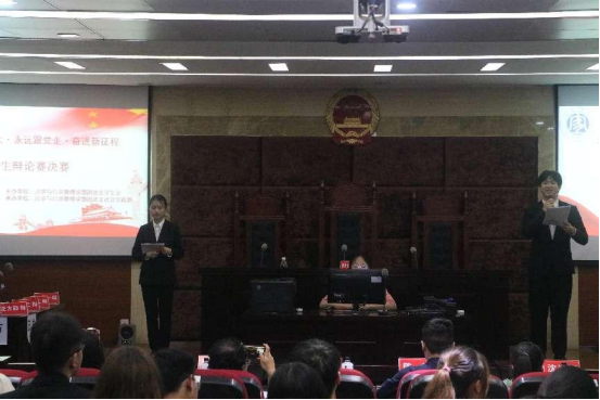 为深化党史学习教育,将理念信念、社会主义核心价值观与大学生喜闻乐见的校园文化活动有效融合,法学与公共管理学部(下简称:法管学部)于5月26日晚上在初心楼模拟法庭举办了以“喜迎二十大、永远跟党走、奋进新征程”为主题的辩论赛决赛,法管学部唐蔚老师、朱丹老师作为评委出席了本次比赛,法管学部辩论队队员以及团总支学生会主席团成员作为嘉宾出席了本次比赛。