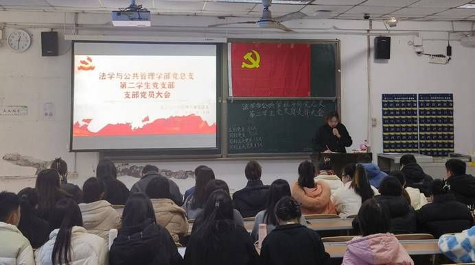 为增强党员的政治性与组织纪律性、为党组织注入新生力量、提升党组织活力与创造力。12月20日,宜宾学院法学与公共管理学部党总支(下简称法管学部)于初心楼103、104、213教室举行预备党员转为正式党员和发展对象转为预备党员支部大会。本次大会由第一学生党支部书记杨肖、第二学生党支部书记陈利敏、第三学生党支部书记王馨主持,学生党支部全体党员及第十九期发展对象出席。