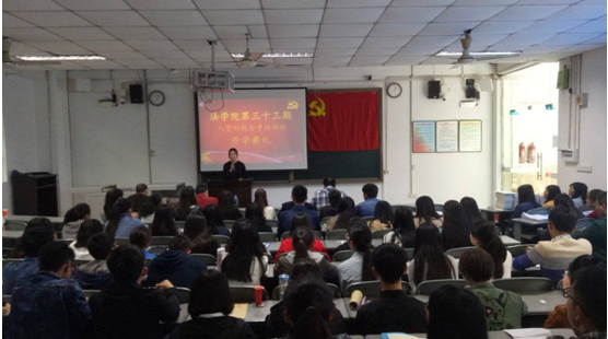 2017年10月19日中午,法学院党总支在一教101教室举行了第33期入党积极分子培训班的开学典礼。法学院党总支书记蒲东升出席并讲话,法学院第本期全体入党积极分子参加了典礼。