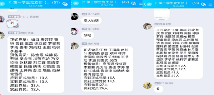 为进一步加强基层党组织建设,落实党支部发展党员工作计划。2021年4月25日至27日,法学与公共管理学部第一、二、三学生党支部分别以线上会议的形式召开支部大会进行关于吸收何玲玲等12位发展对象转为中共预备党员的讨论和表决事宜。会议分别由第一学生党支部书记杨肖、第二学生党支部书记王燕、第三学生党支部书记王馨主持,支部全体党员参加本次大会。