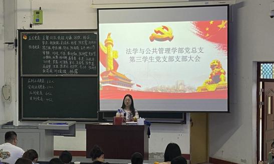 为进一步加强基层党组织建设,落实党支部发展党员工作计划。2021年5月21日,法学与公共管理学部第一、二、三学生党支部分别在硕勋楼B201、B203、B301召开支部大会,进行关于吸收张再敏等128位发展对象为中共预备党员的讨论和表决事宜。会议分别由第一学生党支部书记杨肖、第二学生党支部书记王燕、第三学生党支部书记王馨主持,学生支部全体党员参加本次大会。