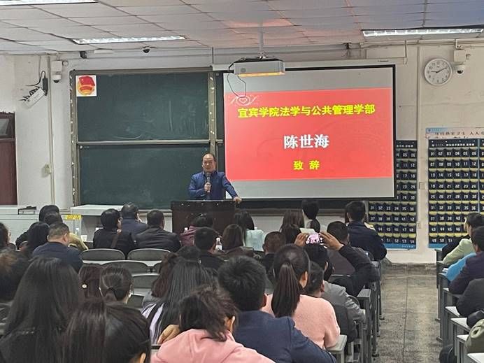 2024年3月23日上午,中共宜宾市委组织部基层干部学历提升班2024级行政管理(本科)、行政管理(专科)、法学(本科)、法律事务(专科)开学典礼在江北校区(A)区初心楼104教室举行。宜宾学院党委组织部常务副部长杨波、宜宾学院继续教育学院副院长(负责工作)单琰秋、法学与公共管理学部部长陈世海以及新生班主任出席了本次典礼。