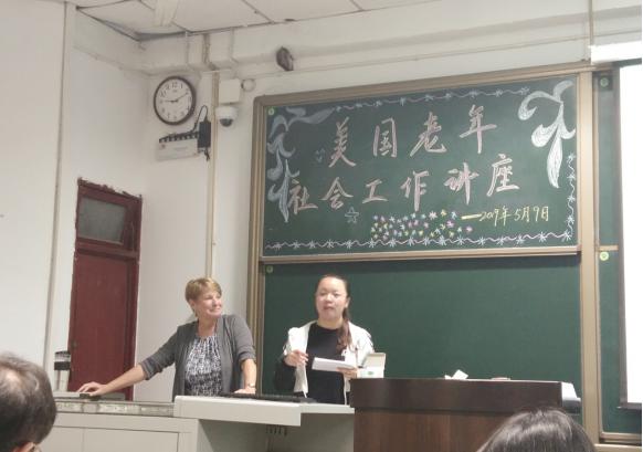 为了让更多的本土学生能够不出国门也能享受到优质的国际教育,从而培养服务于区域经济社会发展的具有国际视野和国际思维的本土化人才,5月9日晚上,在中美应用技术学院的大力支持下,美国资深的老年社会工作者——Pat教授为宜宾学院社会工作专业的全体学生作了关于美国老年社会工作的专题讲座。