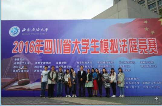 2016年10月21日至10月22日,第四届四川省大学生模拟法庭竞赛在西南石油大学举行。本次竞赛一共有包括四川大学、电子科技大学、四川师范大学等一共有法学专业的22只高校代表队伍参加。我们宜宾学院法学院邓中文院长亲自担任领队,刘廷华博士和王海燕博士组成作为指导老师带领我校14级乔科豪、何萧、卿鑫、孟华靖等一共10个同学参加了本次竞赛。