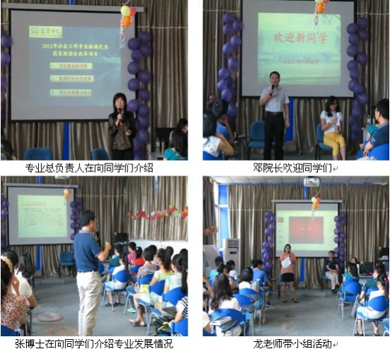 入学专业教育是新生了解专业的第一课,是大学教育的一个关键环节。按照学院总体部署,为了让2013级社会工作专业新生对专业有一个全面的认识,2013年9月15日,宜宾学院社会工作专业的老师们在社会工作实验室为新生们策划了一个别样的温馨专业教育及专业展示活动。