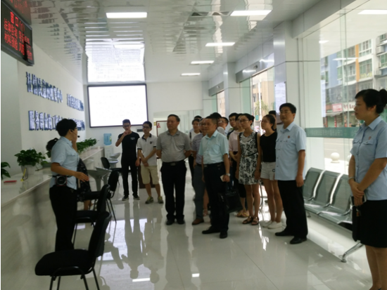 邓中文院长在江安县法院领导陪同下,参观家事审判法庭